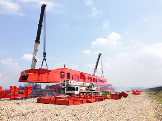 公司主要設(shè)備有:SLJ900T流動式運架一體機、SXJ900T/32M分體式架橋機及運梁車、MG450T提梁機(跨度有35M~40M,起升凈高20~40M)、ME900T提梁機、SXJ550T/32M一跨式架橋機及運梁車、SGTJ180T鋪架機等高鐵運架設(shè)備。